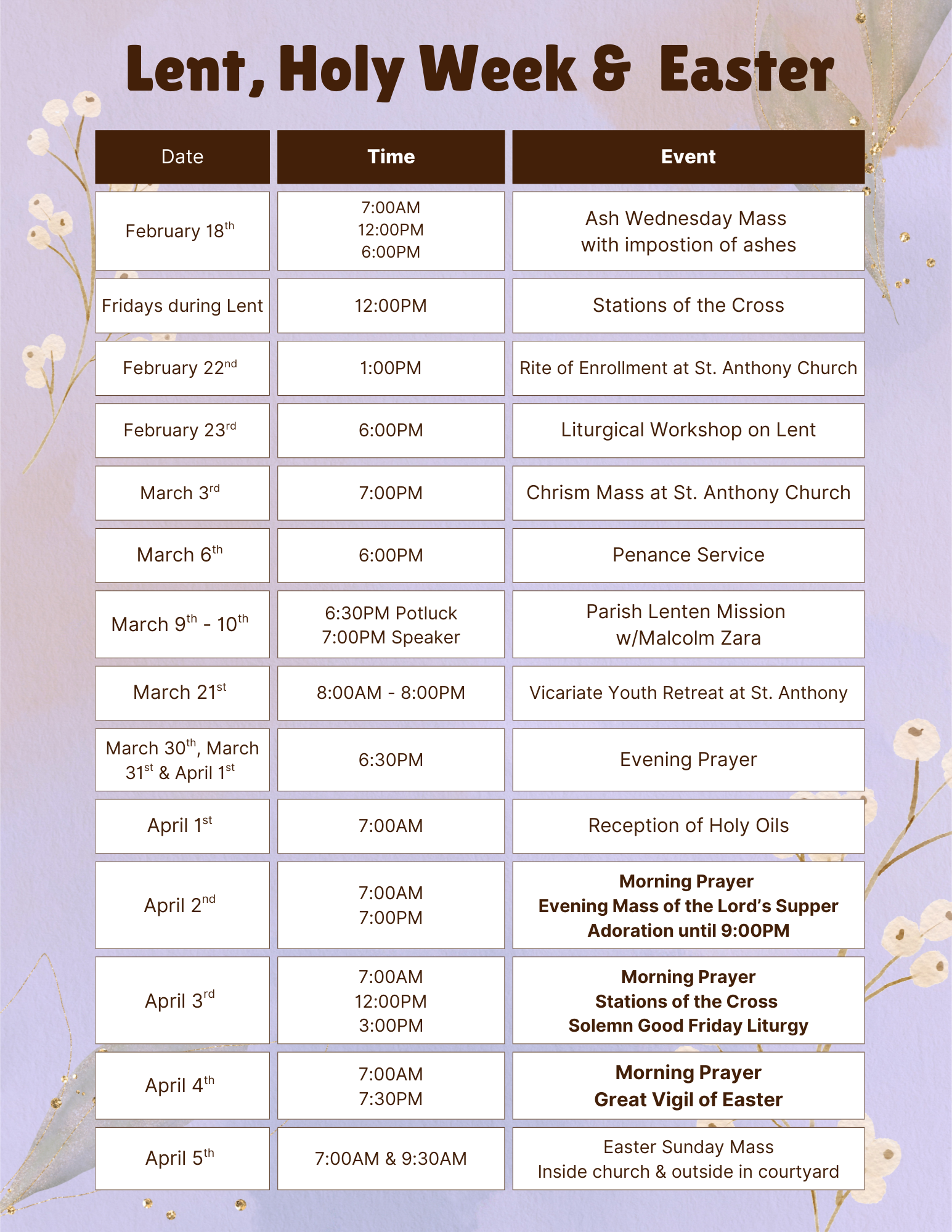 Sunday | 7:00am, 9:30am and 5:00pm